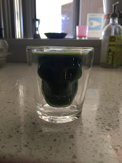My favourite green juice right now is 1 cucumber, half a ‘head’ of celery, a cup of whatever sprouts I have on hand, (mung or sunflower or pea sprouts) a bunch of fresh wheat grass, turmeric root or ginger root and half a bunch of cilantro.